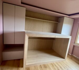 Donnez vie à vos espaces intérieurs grâce à notre menuiserie sur mesure. Que vous souhaitiez une cuisine qui respire la convivialité, un salon imprégné de chaleur boisée ou des espaces de rangement intelligents, notre équipe de menuisiers qualifiés concrétise vos rêves en bois. De la conception à la réalisation, chaque détail est méticuleusement pris en compte pour créer des intérieurs qui reflètent votre style et répondent à vos besoins.